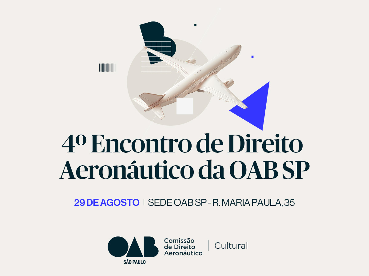 A OAB SP (Ordem dos Advogados do Brasil Seção São Paulo), por meio de sua Comissão de Direito Aeronáutico, realiza, no dia 29 de agosto, a partir das 9h, o 4º Encontro de Direito Aeronáutico. O evento, promovido desde 2022, reúne especialistas para debater os temas mais relevantes e em alta no setor.
