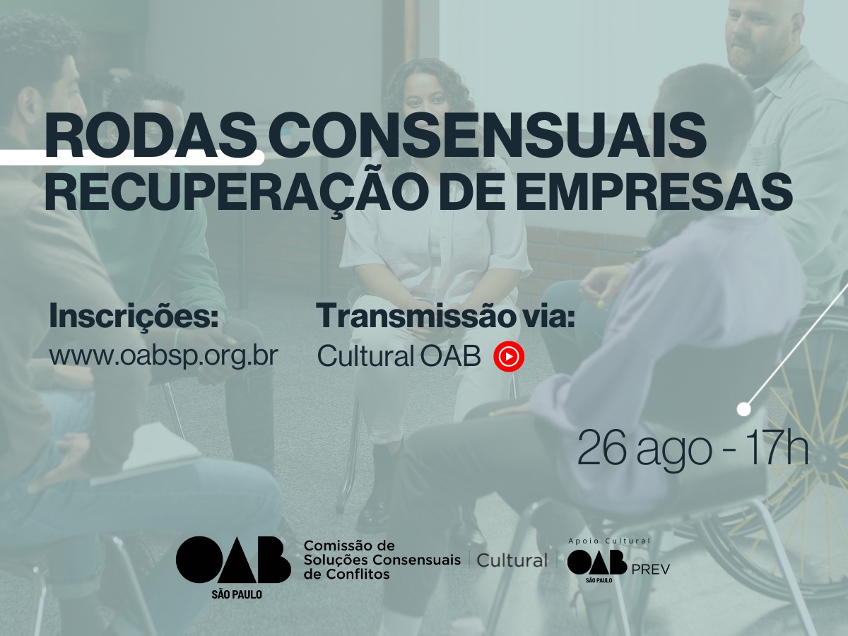 Promoverá debates sobre métodos autocompositivos de resolução de conflitos no contexto da recuperação de empresas. O objetivo é fomentar a troca de experiências e a difusão de práticas consensuais, reunindo advogados, acadêmicos e outros profissionais da área.