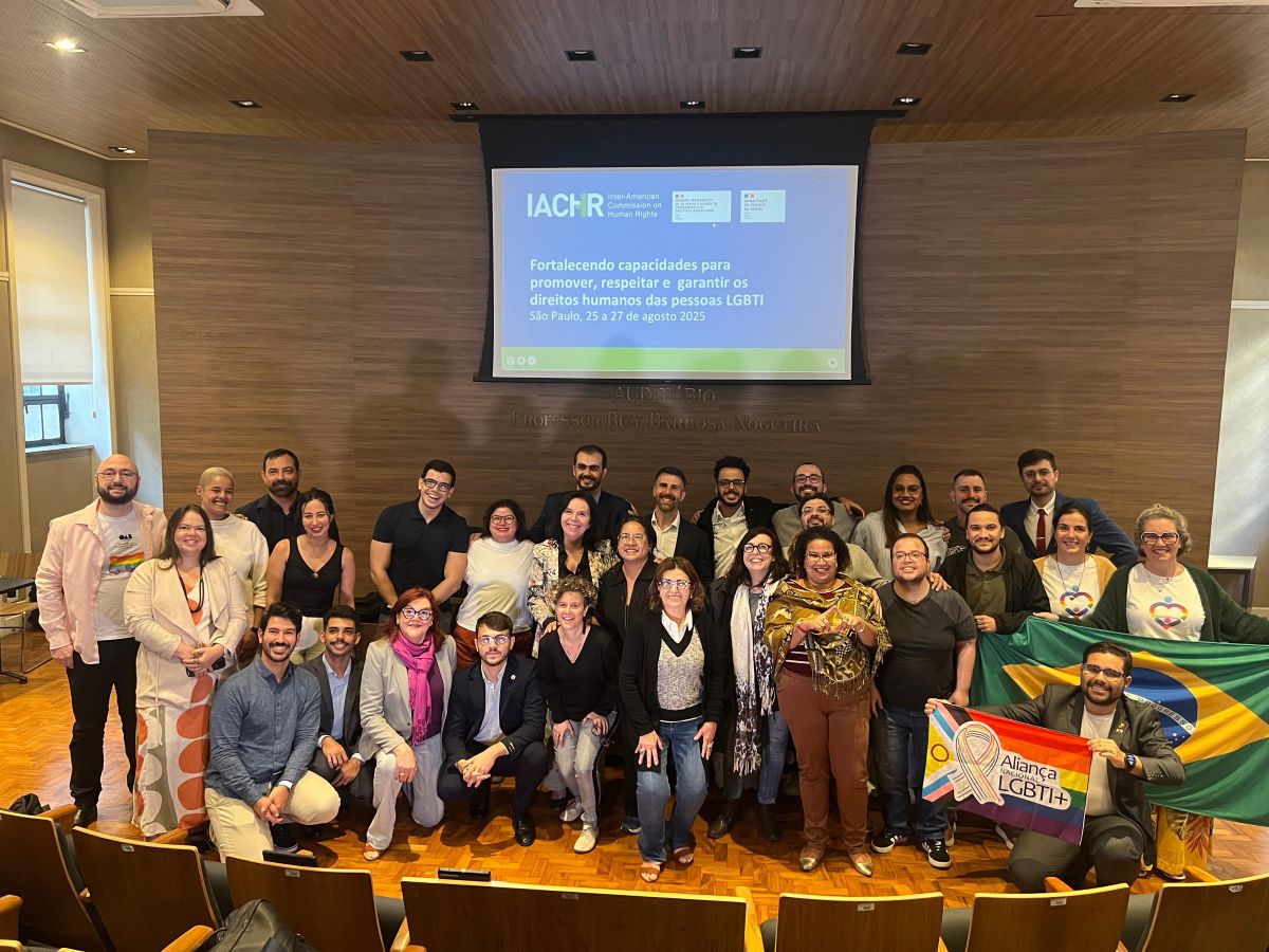 A OAB SP foi convidada a integrar o curso que reuniu lideranças na defesa de direitos humanos de todo o país, por meio da Comissão de Diversidade Sexual e de Gênero (CDSG), pela Relatoria da CIDH sobre os Direitos de Pessoas Lésbicas, Gays, Bissexuais, Trans e Intersex. A atividade contou com advogados(as) atuantes em diversas comissões da seccional e subseções alinhadas à pauta da diversidade, como as Comissões de Direitos Humanos e de Prerrogativas, além de instituições e entidades como a Defensoria Pública do Estado de São Paulo e a Aliança Nacional LGBTI+, bem como diferentes movimentos e organizações da sociedade civil de defesa de direitos LGBTI+, compondo um espaço plural e de diálogo coletivo.
