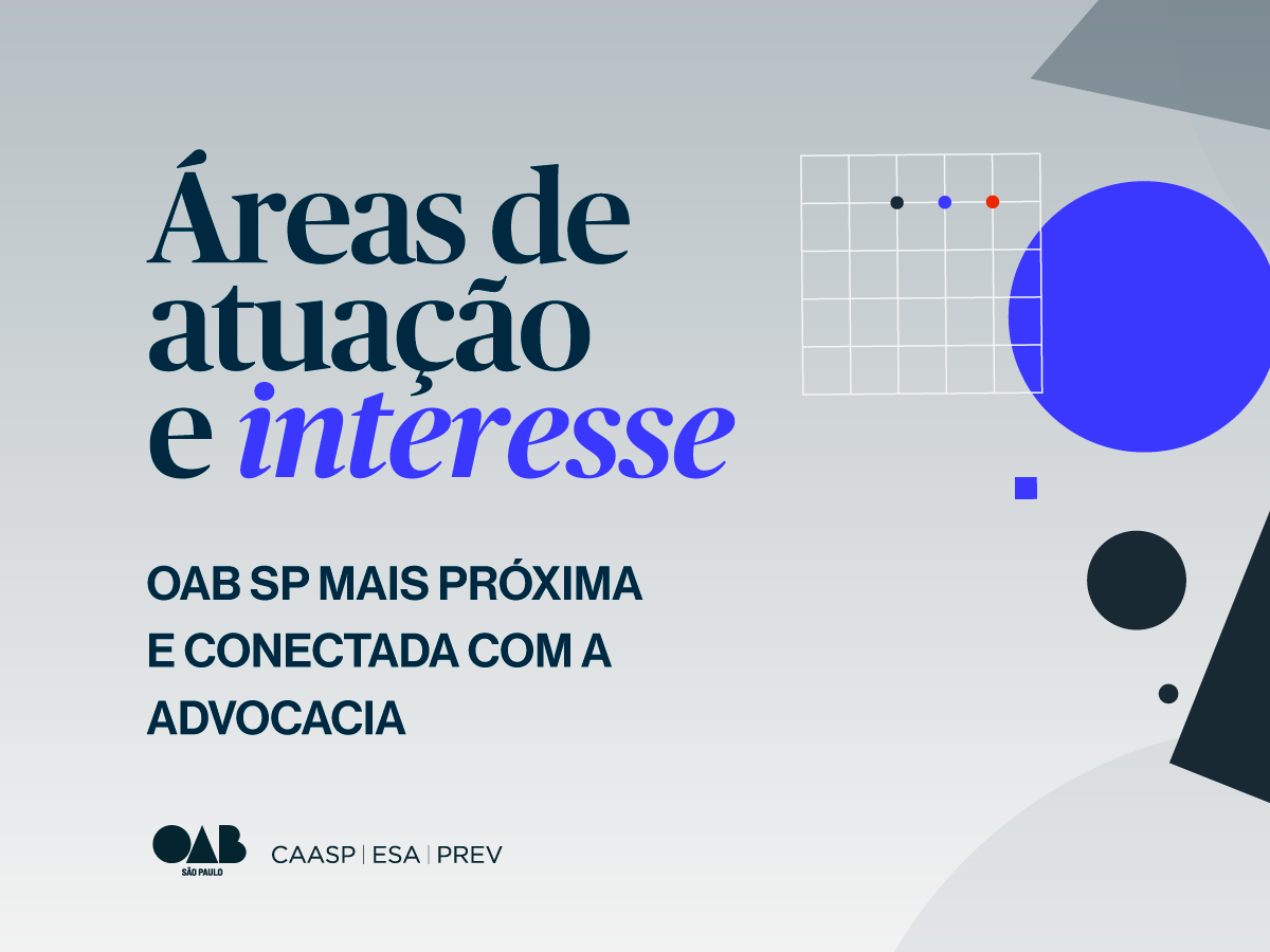 Nesse movimento de modernização e aprimoramento dos serviços, a OAB SP (Ordem dos Advogados do Brasil Seção São Paulo) quer conhecer melhor a advocacia paulista. Pensando nisso, a Ordem disponibiliza a opção ‘Áreas de Atuação e Interesse da Advocacia’, na área restrita do site, para coletar informações da advocacia paulista. Com base nas informações coletadas, será possível desenvolver ações e soluções mais alinhadas às necessidades dos advogados e advogadas de todo Estado.