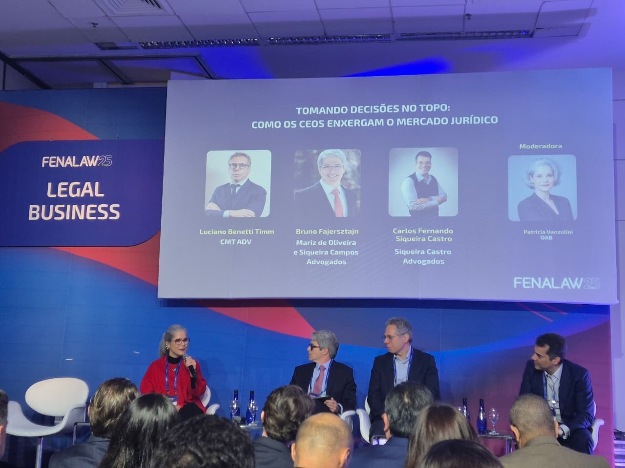 Sob a ótica de CEOs de três formatos distintos de escritórios de advocacia, o painel “Tomando Decisões no Topo: como CEOs enxergam o mercado jurídico”, contou com a mediação da conselheira federal pela OAB SP (Ordem dos Advogados do Brasil Seção São Paulo), Patricia Vanzolini, com a proposta de entender os movimentos de mercado e levar aos presentes perspectivas diferentes de atuação profissional. “Quando pensamos em sucesso, normalmente pensamos em um modelo único, mas existem diferentes possibilidades”.