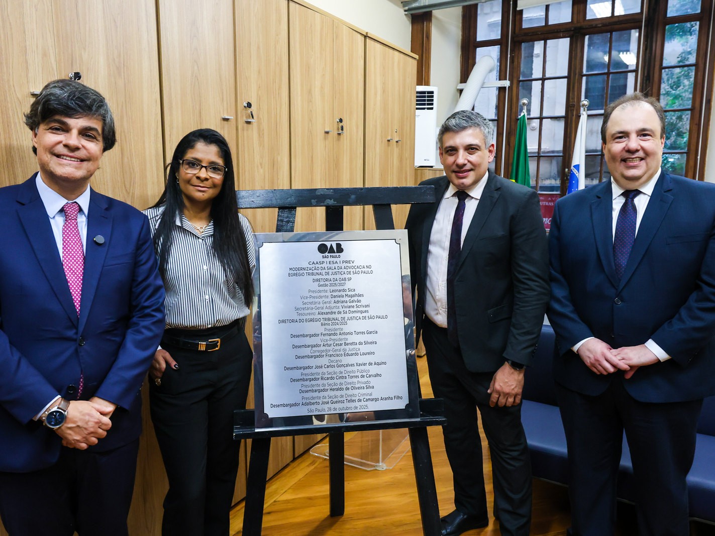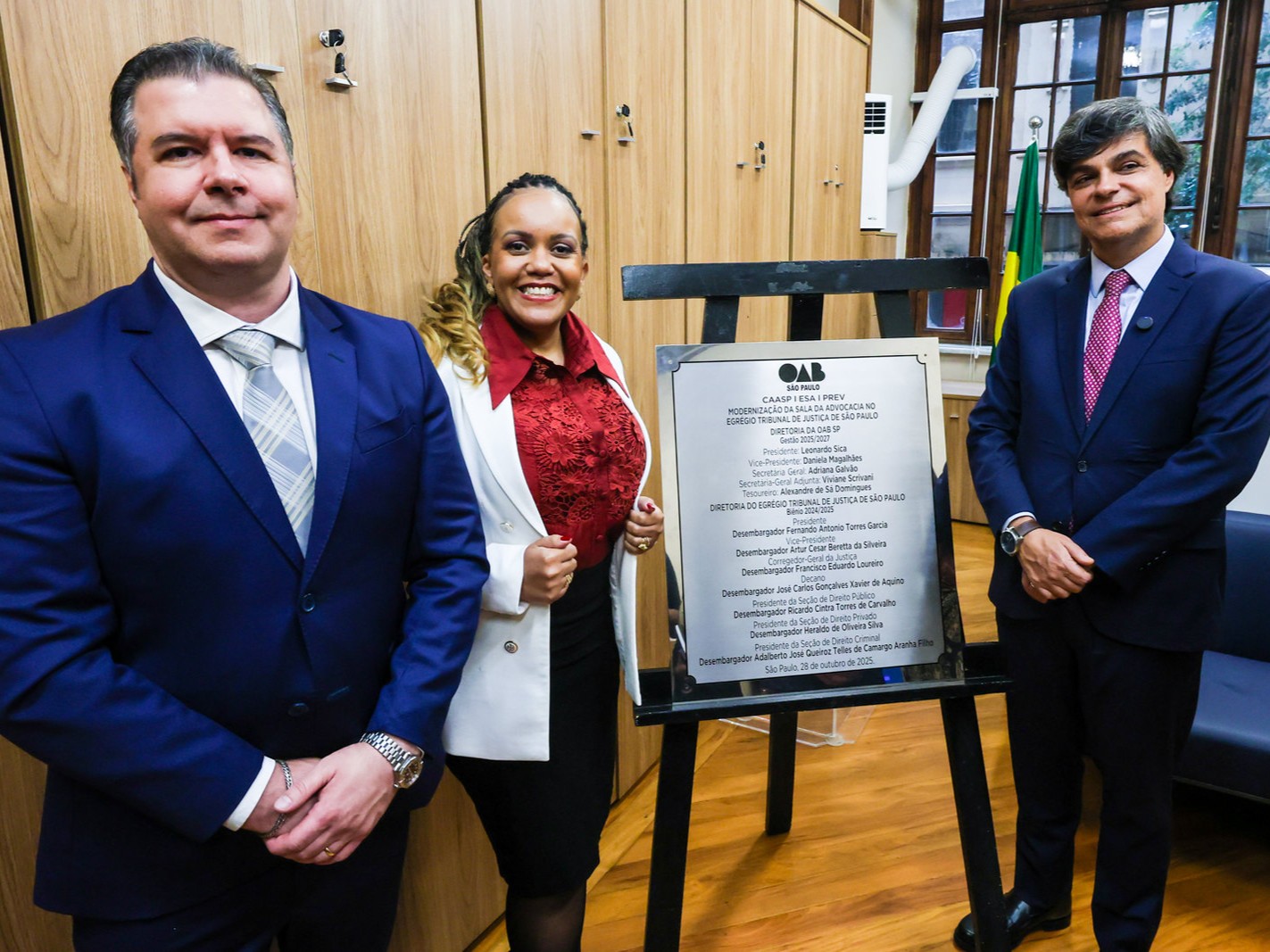 A diretoria da OAB SP (Ordem dos Advogados do Brasil Seção São Paulo) entregou nesta terça-feira (28) a modernização da sala do advogado e advogada no TJSP (Tribunal de Justiça de São Paulo).