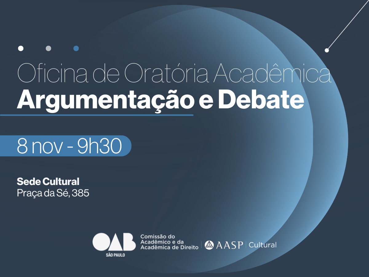 Promovida pela OAB SP, tem como objetivo desenvolver as habilidades de comunicação, argumentação e persuasão de estudantes e profissionais do Direito. O encontro oferece técnicas práticas para aprimorar a expressão oral, a construção de raciocínios jurídicos e o desempenho em debates e sustentações orais, fortalecendo a confiança e a clareza na atuação acadêmica e profissional.