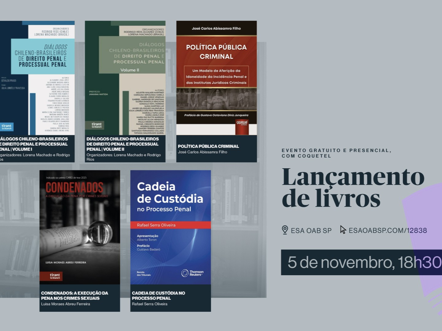 Nos dias 3 e 4 de novembro, será realizado o I Seminário “Direito e Hierarquias Raciais: Conflitos, Permanências e Possibilidades de Transformação”, um encontro que propõe discutir o papel do sistema de justiça no enfrentamento das desigualdades. Já no dia 5, a ESA SP promove o tradicional Lançamento de Livros, reunindo autores e pesquisadores para celebrar novas produções jurídicas e acadêmicas. A iniciativa reforça o compromisso da instituição com o incentivo à pesquisa, à escrita e à difusão do conhecimento entre advogados, estudantes e professores de Direito.