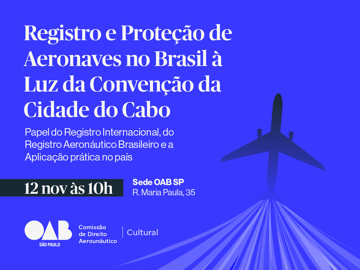 Especialistas em direito aeronáutico e representantes do setor discutirão os impactos da Convenção na segurança jurídica, financiamento e comercialização de aeronaves, bem como os procedimentos de registro e execução de garantias no contexto brasileiro.