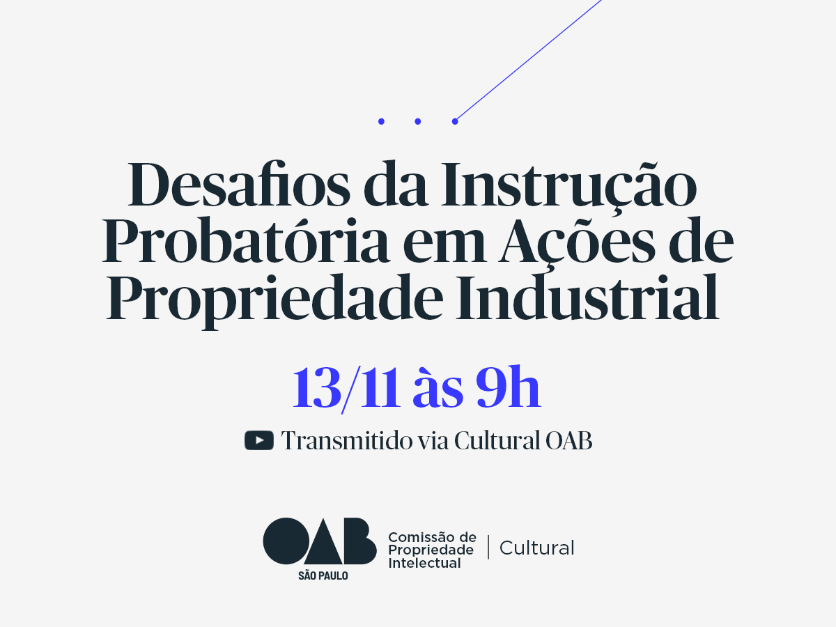 O webinar discutirá os principais desafios na produção e análise de provas em ações judiciais envolvendo propriedade industrial, como patentes, marcas e desenhos industriais.