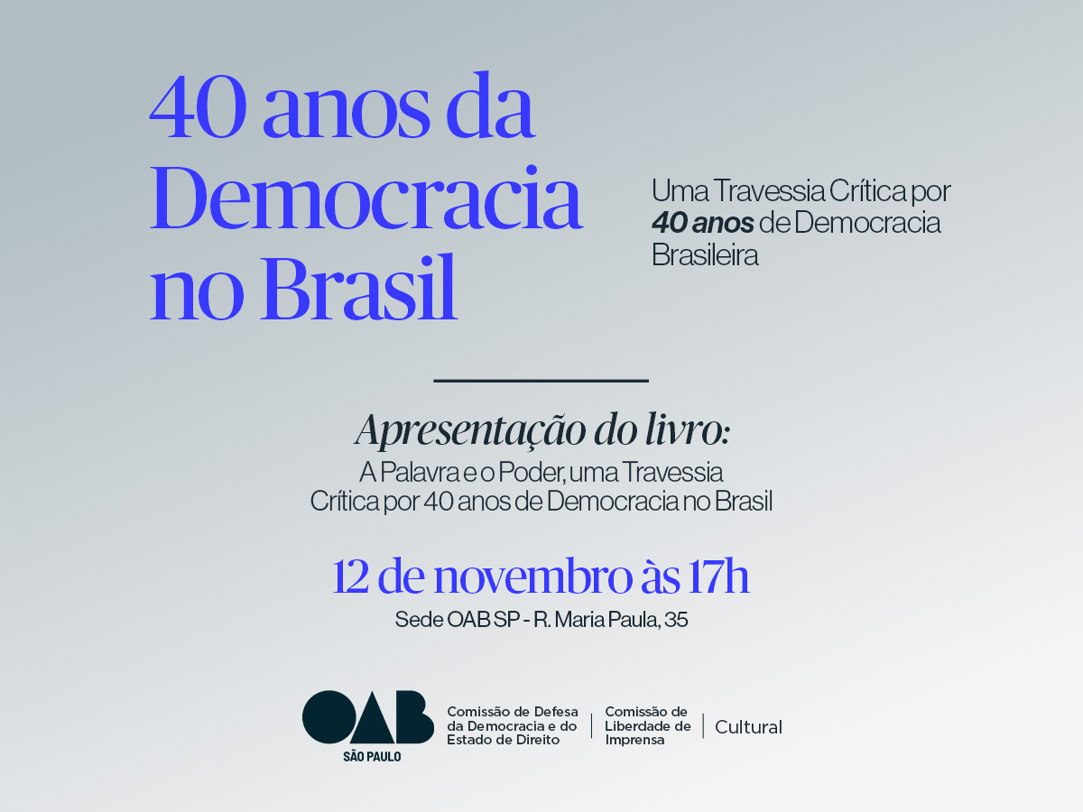 A atividade marca as quatro décadas de redemocratização do país e apresenta a obra que revisita, de forma crítica, os principais marcos políticos, sociais e institucionais desse período, destacando os desafios e conquistas da democracia brasileira.