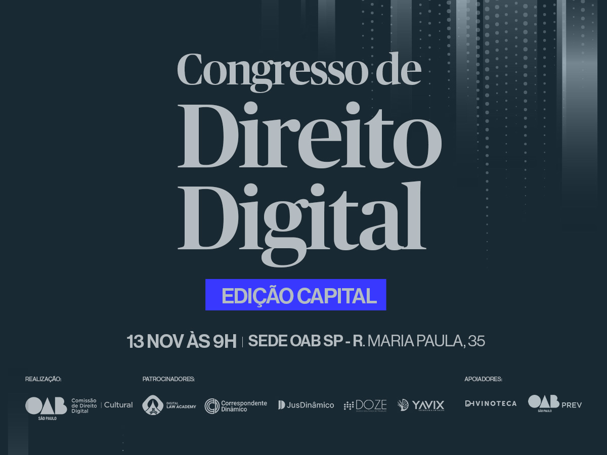 O congresso destacará temas como responsabilidade civil em ambientes digitais, regulação de plataformas, segurança da informação e ética na era da IA, promovendo uma reflexão sobre como o Direito Digital molda o futuro da advocacia e das relações sociais.