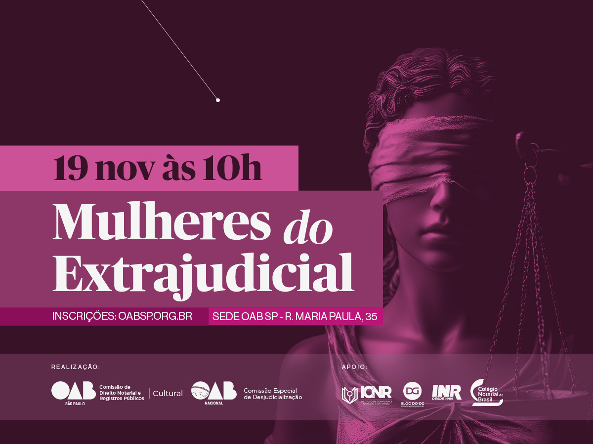 O evento é um encontro dedicado a valorizar a competência e o protagonismo feminino no meio extrajudicial, além de inspirar, transformar e fortalecer as mulheres na área. A programação vem com painéis temáticos sobre inventário extrajudicial, usucapião extrajudicial como ferramenta de regularização fundiária, planejamento sucessório, divórcio, entre outros.