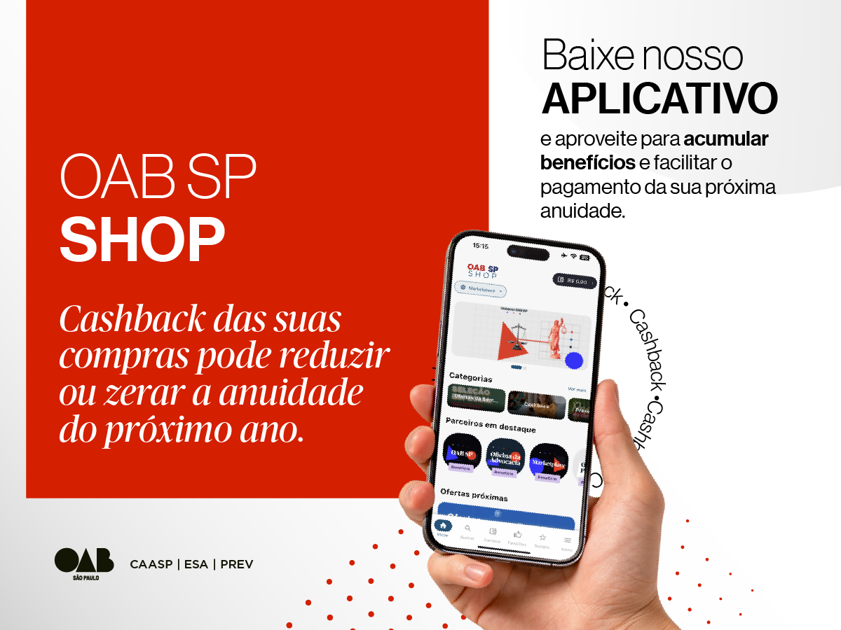 Mas a grande vantagem estratégica para o advogado está no retorno financeiro direto. Ao realizar suas compras através do app, o profissional acumula cashback. E o melhor: esse valor não é um crédito virtual ou uma bonificação complexa. Ele é automaticamente convertido em abatimento na anuidade do ano seguinte da OAB SP. É economia que se materializa no compromisso profissional, garantindo um retorno financeiro real e significativo.