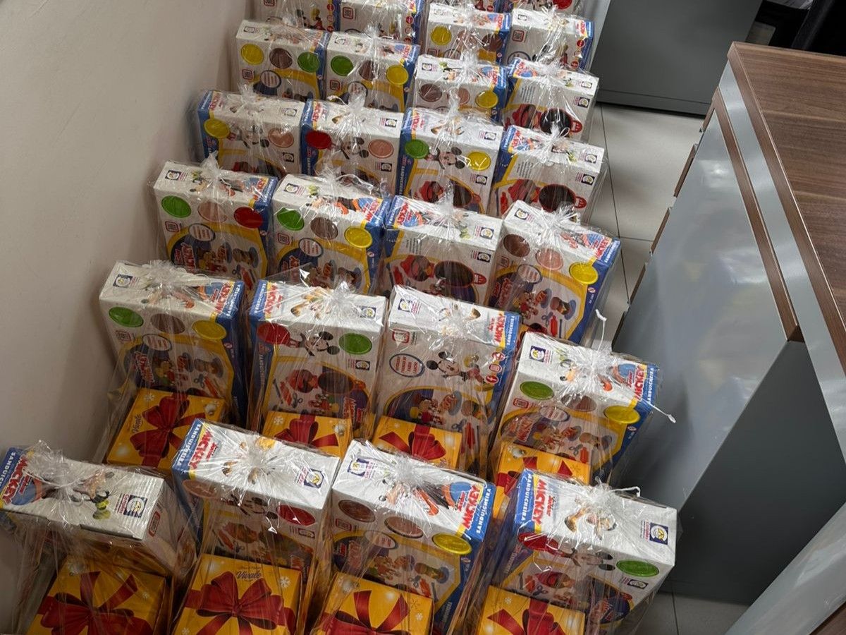 Pela manhã, a entrega contemplou duas entidades cadastradas e sorteadas: a Associação Evangélica Beneficente (AEB) e a Associação Aliança de Misericórdia. Cada instituição recebeu 32 brinquedos e 25 chocotones.